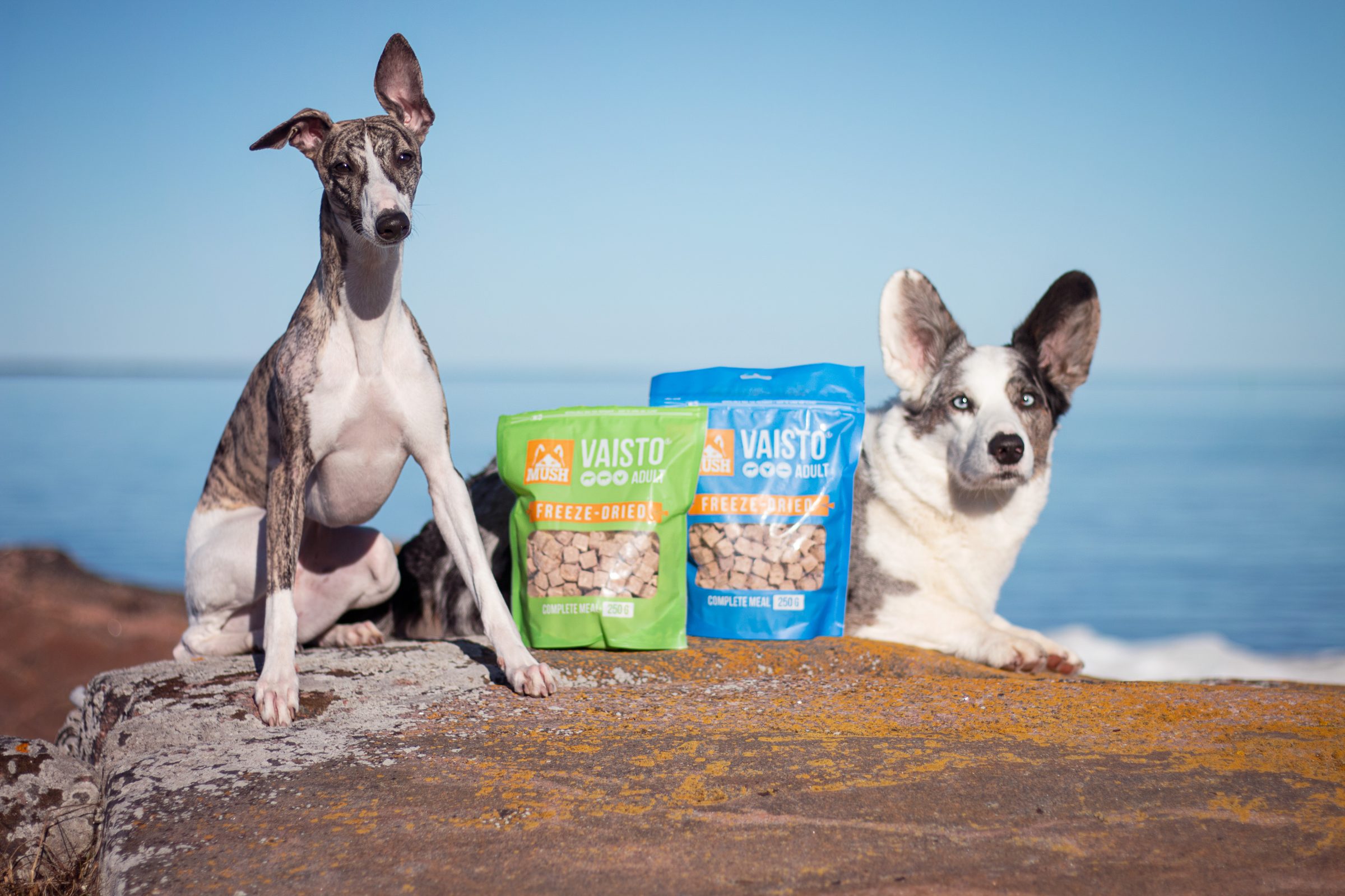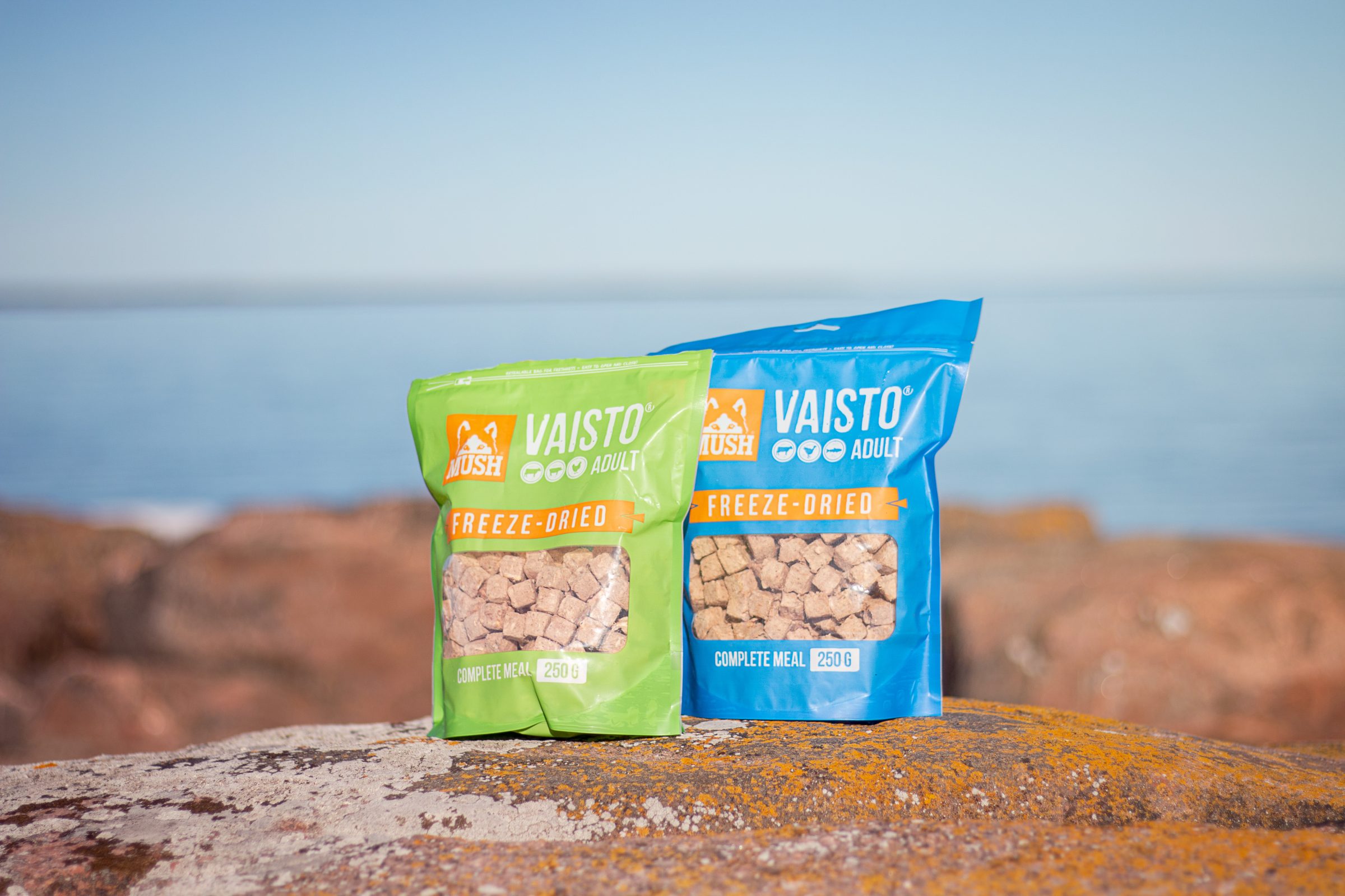 Lemmikit ansaitsevat hyvää ja ravintorikasta ruokaa myös matkoilla ja retkillä. Tähän haasteeseen vastataksemme laajensimme nyt pakastekuivattujen tuotteiden valikoimaamme – aiemmin syksyllä 2020 lanseerattujen MUSH Hellä Freeze-dried tuotteiden lisäksi on nyt saatavilla pakastekuivatut versiot suosituimmista Vaisto tuotteistamme. Vaisto Vihreä Freeze-dried, Vaisto Sininen Freeze-dried ja Vaisto Harmaa Freeze-dried koirille on saatavilla 250g ja 800g pusseissa, sekä kissoille oma Vaisto Cat Keltainen Freeze-dried 250g pussissa.