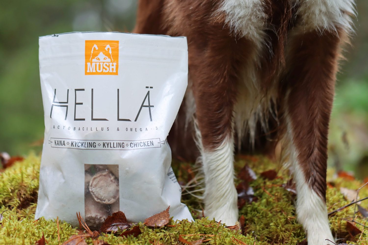 Tarm- og hudproblemer er dessverre ganske vanlig hos hunder, det er mistanke om at årsaken til disse problemene er fordi mangfoldet av tarmbakteriene (mikrobiota) har blitt mindre. Derfor ønsket vi hos MUSH å utvikle et funksjonelt fôr beriket med fermenterte grønnsaker som inneholder nyttige melkesyrebakterier. Navnet på det funksjonelle fullfôret ble Hellä, som er finsk og betyr skånsomt.