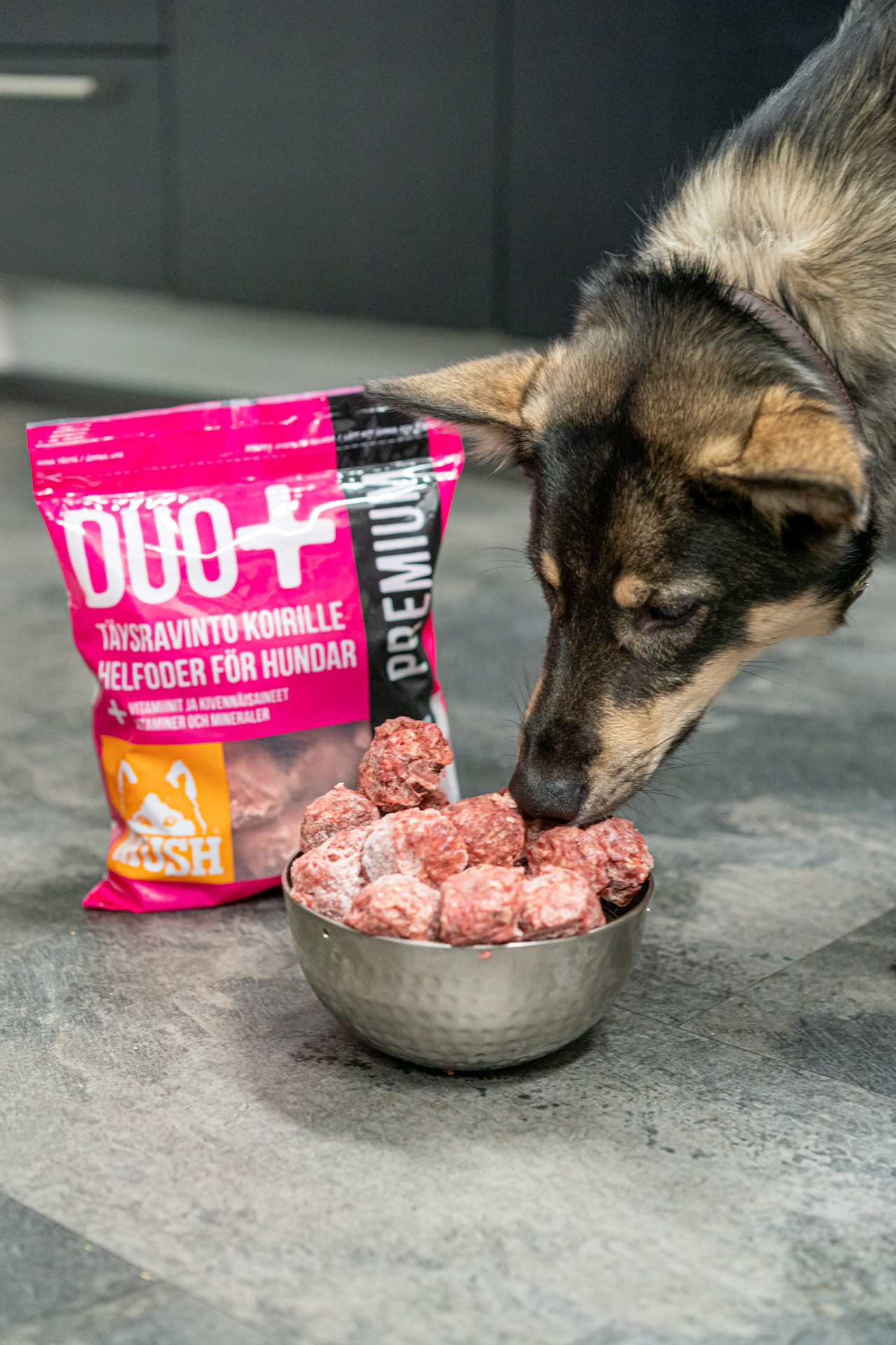 Duo+ raakaruokasarjamme on viljaton, eikä se sisällä turhia täyteaineita. Tuoteseloste on tarkempi kun mihin alalla on totuttu, sillä haluamme, että jokainen lemmikinomistaja tietää tarkalleen mitä lemmikilleen syöttää.