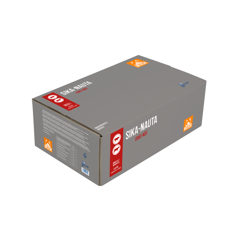 Sika-nauta minilevy sopii erinomaisesti käytettäväksi muun ruoan seassa, mutta se ei ole täysravinto, eli se ei riitä sellaisenaan ainoana ruokana kattamaan päivittäistä ravintoainetarvetta kissoilla ja koirilla. Yhtälailla voit käyttää sitä omien yhdistelmien toteuttamiseen. Pakkaus sisältää ~20 kpl á ~230 g minilevyä.