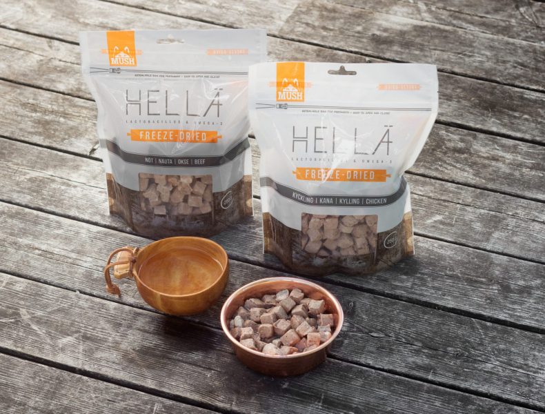 Nu kommer MUSH med en nyhet för alla ressugna hussar och mattar som inte vill tulla på kvaliteten på hundens mat under sina resor – Hellä Freeze-Dried. Det är ett helfoder som innehåller allt och lite till, har mycket låg vikt och tar lite plats. Hellä Freeze-Dried är en frystorkad version av MUSH Hellä, superfodret för hund som lanserades ifjol. Förutom kött innehåller det fermenterade grönsaker som är rika på nyttiga mjölksyrabakterier, en exklusiv blandning av omega-3 fisk- och olivolja och kalcium från äggskal. Produkterna är balanserade med en naturlig vitamin- och mineralpremix av noggrant sammansatta örter och växter.