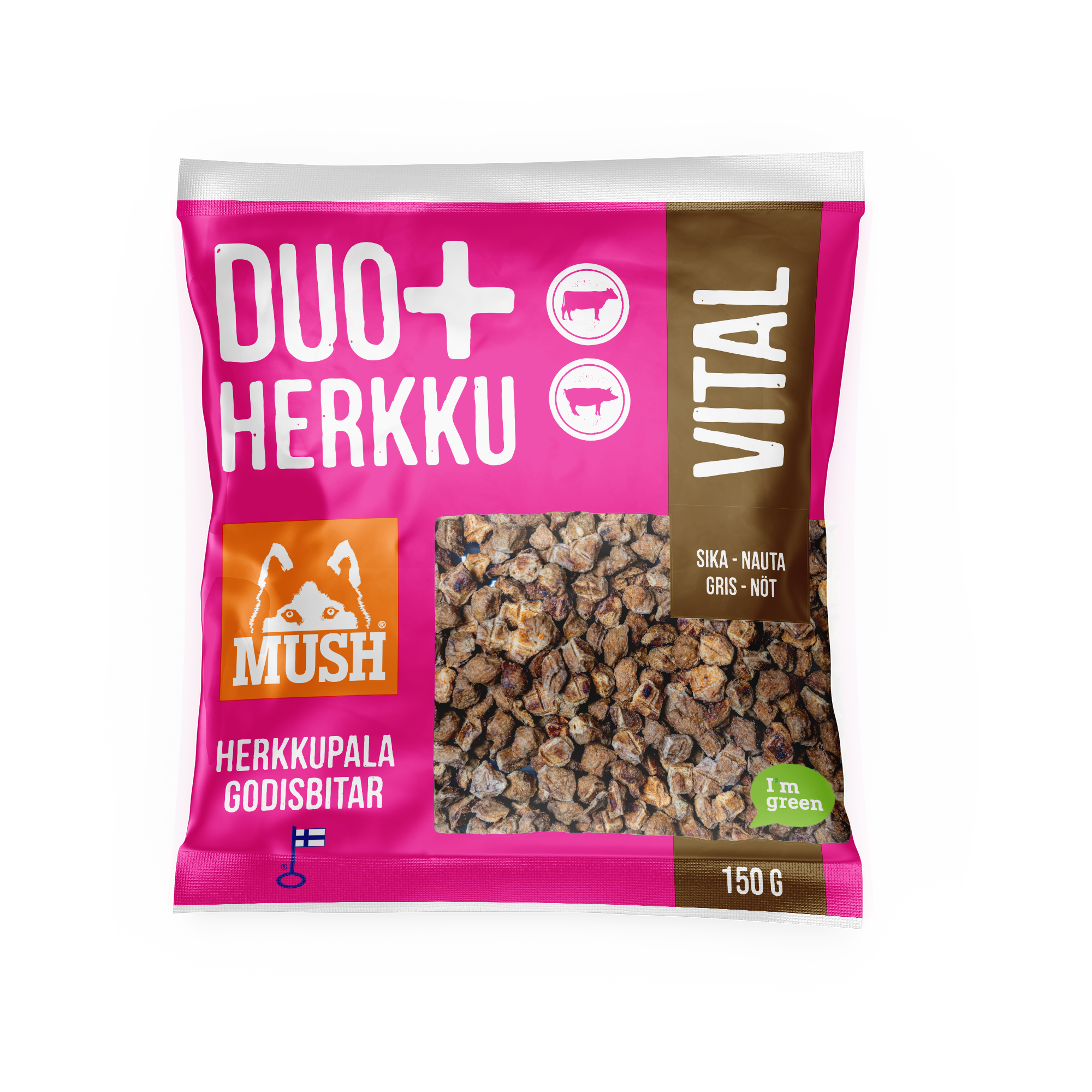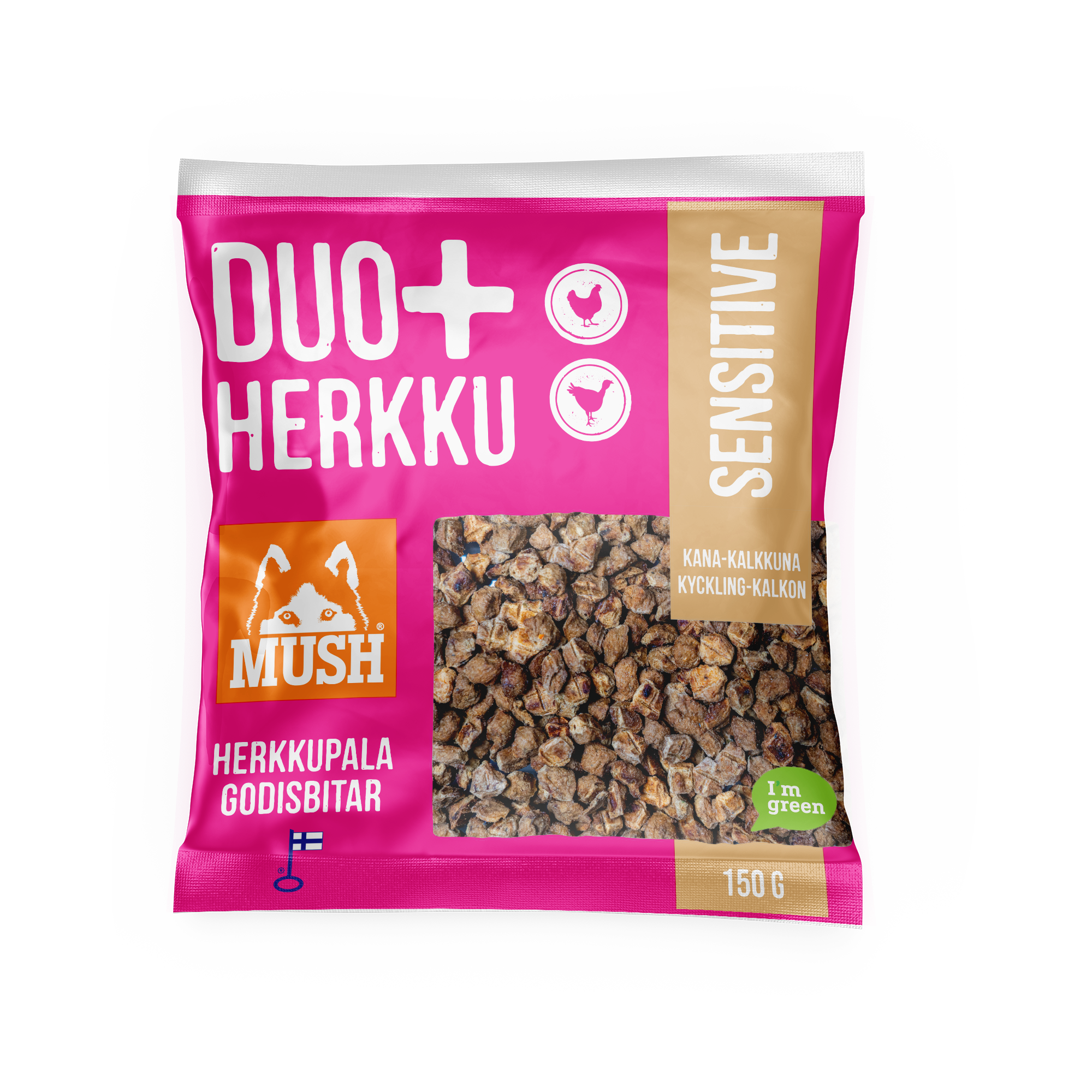 Valmistettu suomalaisista, laadukkaista raaka-aineista – täydellinen valinta koulutukseen, aktivointiin tai vain herkkuhetkiin. Vastuullisesti tuotetut herkut tukevat koirasi hyvinvointia luonnollisella ja puhtaalla tavalla.